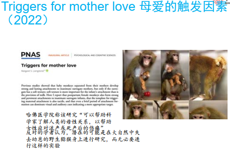 Triggers for mother love 母爱的触发因素 ( 2022)及哈洛恒河猴实验(1950s) (伦理